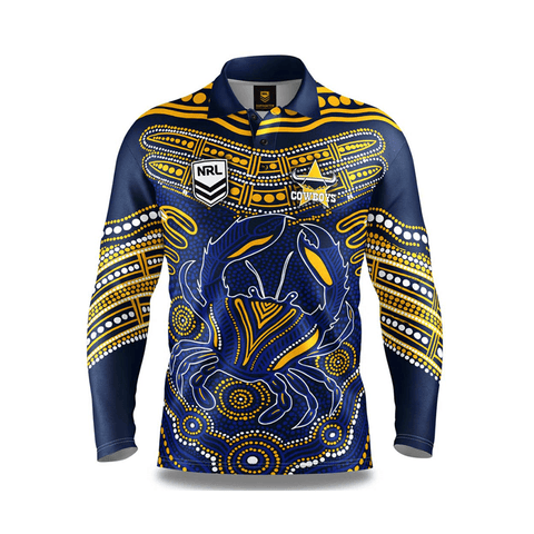 Our NRL North Queensland Cowboys 'Karumba' Fishing Shirts are designed by Indigenous artist, Nathan Patterson. Using a mixture of contemporary designs with traditional techniques that incorporate the dreamtime stories of his people and of the land he was born on.