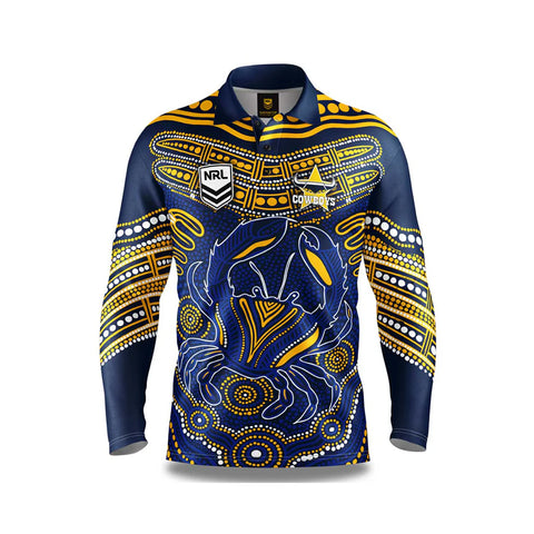 Our NRL North Queensland Cowboys 'Karumba' Fishing Shirts are designed by Indigenous artist, Nathan Patterson. Using a mixture of contemporary designs with traditional techniques that incorporate the dreamtime stories of his people and of the land he was born on.