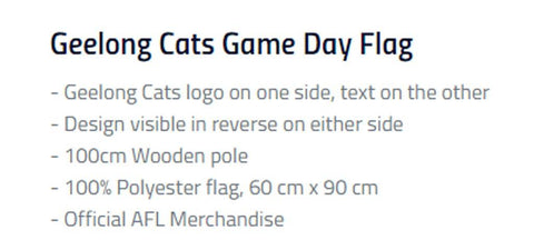 Geelong Cats Game Day Flag PLEASE NOTE: NO STICK COMES WITH THIS PRODUCT DUE TO POSTAGE SIZE REST... Read more